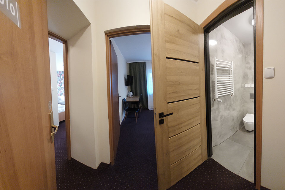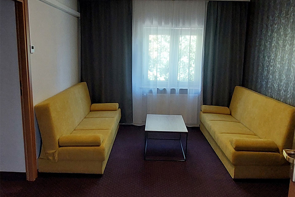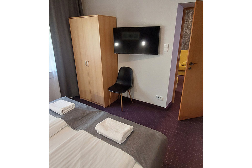 • 1 Deluxe double room (30m²) with two rooms: the living room is the first room, from which you enter the bedroom with a bathroom